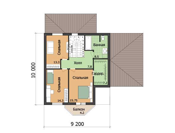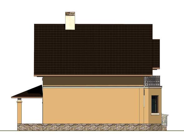 Небольшой уютный дом для семейной жизни. Здесь все лаконично и продуманно. Жилую часть первого этажа представляет просторная гостиная-столовая, небольшая кухня, санузел и топочная. Второй этаж выполнен в виде мансарды, на нем разместились три просторные спальни, гардеробная комната и большая ванная комната. Образ дома завершают летняя терраса для отдыха всей семьи и навес под машину. (Проект компании Реал Строй-М)